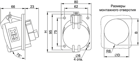 - 3 - число контактов (3 - 2P+PE; 4 - 3P+PE; 5 - 3P+PE+N).