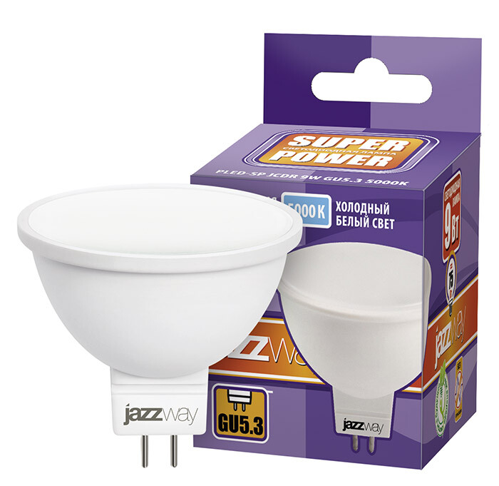Лампа свд GU5.3 9Вт 5000К 720лм MR16 матовая Jazzway