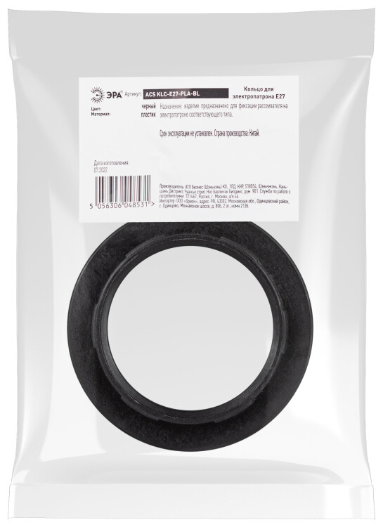 Кольцо для патрона E27 пластик черный ЭРА