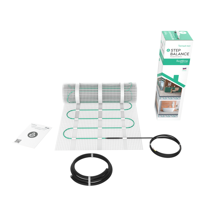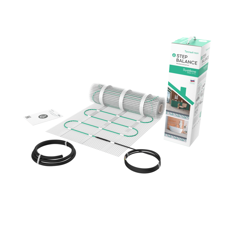 Нагревательный мат STEP BALANCE (Systeme Electric) мощностью 150 Вт/кв.м, площадью 1 кв.м, общая мощность 150 Вт. Мат предназначен для создания системы теплого пола в качестве основного и дополнительного обогрева напольных покрытий, для сухих и влажных помещений, работающей в сети переменного тока с номинальным напряжением 230 В и частотой 50 Гц. Внутренняя изоляция кабеля выполнена из высокотемпературного PVC, внешняя оболочка - PVC. Максимальная рабочая температура +70 °C. На теплые полы Systeme Electric предоставляется расширенная гарантия сроком 50 лет, при проведении монтажа сертифицированным специалистом. В комплект теплого пола входит:нагревательный мат