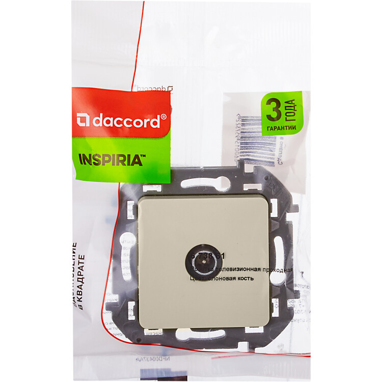 Розетка телевизионная для скрытого монтажа Legrand/Daccord Inspiria, проходная для схемы "шлейф", затухание 14дБ, 4-862МГц, цвет "Слоновая кость".