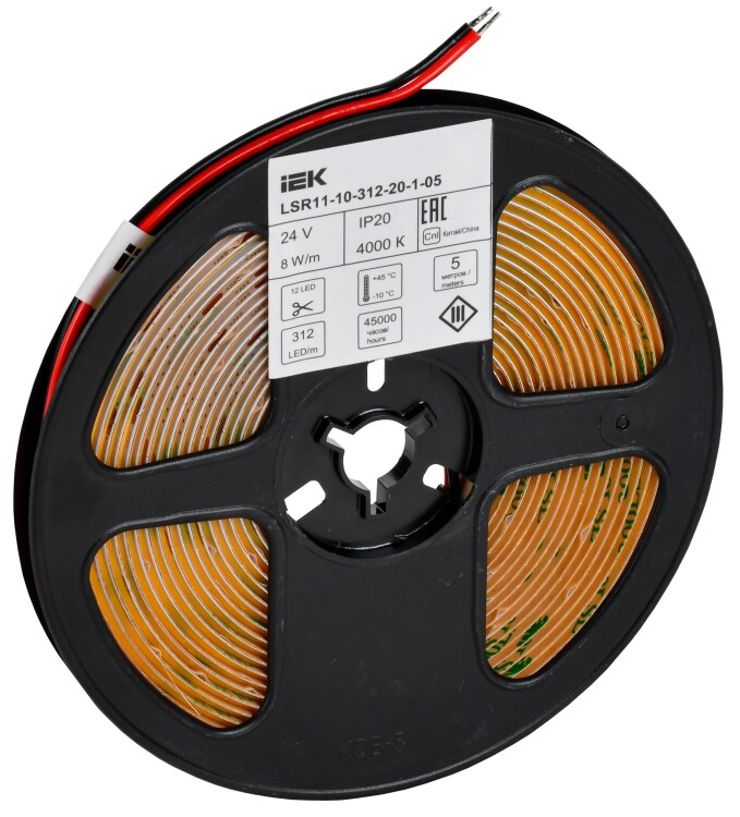 Низковольтная светодиодная лента 24 В COB с количеством 312 светодиодов на 1 м торговой марки IEK позволяет создавать декоративное освещение мебели, ниш, барных стоек, окон и витрин, а также подсветку деталей интерьера: многоуровневых и подвесных потолков, карнизов, плинтусов. В отдельных случаях используется в качестве основного освещения.