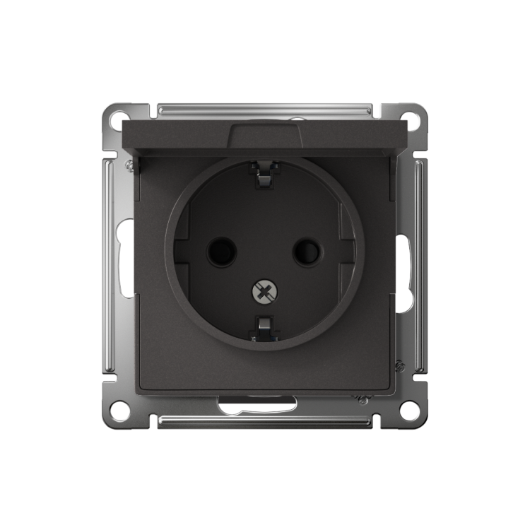 Розетка одноместная Systeme Electric ATN001446 AtlasDesign (16 А, IP20) скрытой установки, с заземлением, с защитными шторками, с крышкой, базальт