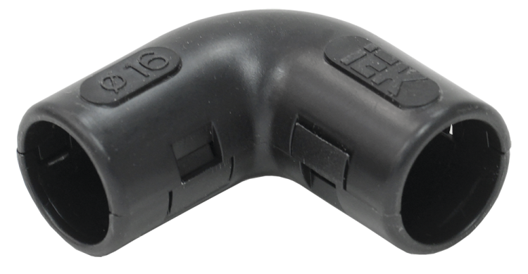 Поворот 90° 16мм IP40 разъемный черный пластик IEK