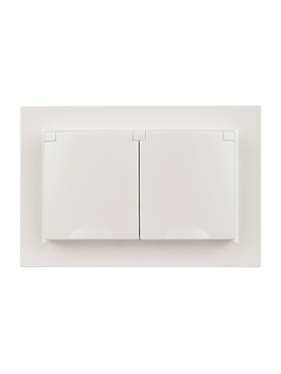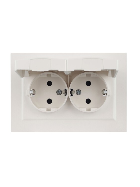 Розетка двухместная IEK РСбш12-3-44-БрЖ Brite (16 А, IP44) скрытой установки, с заземлением и защитными шторками, с крышками, в сборе, жемчуг