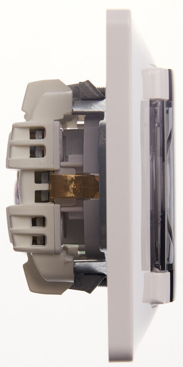 Розетка Systeme Electric (ранее Schneider Electric) серии Glossa (в сборе, цвет белый) одинарная с заземлением, шторками и крышкой подходит для сетей 250 В, на ток 16 А. Изделие со степенью защиты IP44 обеспечит безопасность использования в ванной и на кухне. Заземляющий контакт обеспечивает дополнительную защиту от удара электрическим током. При наличии заземления электрический потенциал уходит в землю, защищая человека. Выполнен из материала PС+ASA, стойкого к УФ-излучению и появлению царапин. (ранее Schneider Electric ЭУИ UNICA NEW NU003718)