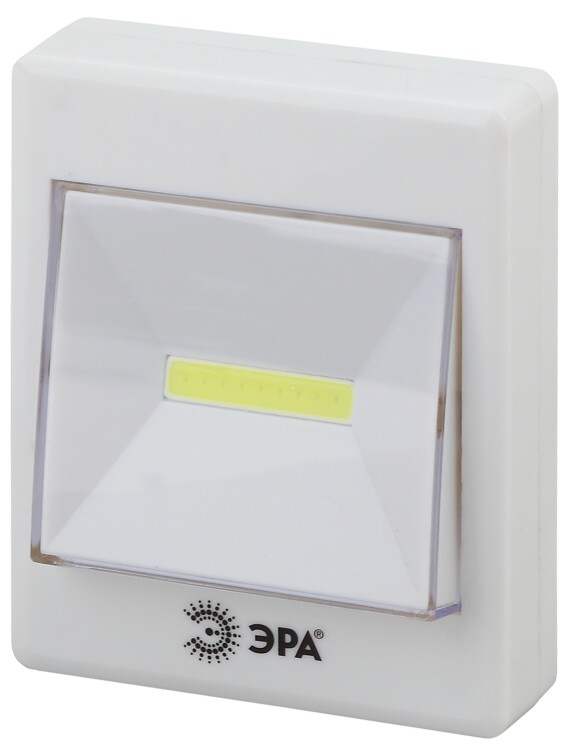 ЭРА SB-606 - компактный светодиодный фонарь-пушлайт, работающий по принципу традиционного выключателя. Создан для освещения помещений без стационарного света и для дополнительной подсветки затемнённых мест. Сверхъяркий и суперэкономичный свет chip on board - мультикристалл на плате. Широкий угол светового пучка даёт качественное заливающее освещение. Быстрое закрепление на любой гладкой поверхности, удобное включение и простота в управлении. Чтобы закрепить фонарь на любую ровную поверхность, потребуется всего минута. Самоклеящаяся основа и само устройство соединяются друг с другом при помощи прочной липучки. Это даёт большое преимущество при последующих заменах батареек - фонарь легко снимается и снова закрепляется на текстильную застёжку. Имеется и дополнительный вариант крепления - углубление для подвешивания на шуруп или гвоздь. В самом центре выключателя расположена LED-плата с целым рядом мелких и очень ярких светодиодов. это промышленная технология, адаптированная для универсальных целей. Получился яркий, но при этом ровный мягкий свет, идеальный для бытовой подсветки. LED-мультикристаллы не тускнеют со временем и не нуждаются в замене. Они обеспечивают максимально широкий угол освещения с дальностью 25 метров. Фонарь-пушлайт ЭРА SB-606 идеален для подсветки полок шкафов и ящиков комодов, для дополнительной подсветки кухонных рабочих поверхностей, для освещения подсобок. Устройство экономично - от одного комплекта батареек (3хААА) работает свыше 60 активных часов.