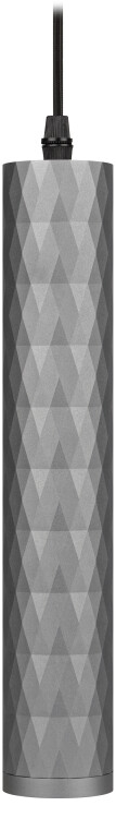 Подвесной светильник PL15 GR выполнен в фактурном рисунке "ромб". Притягивает и завораживает, создает новые грани красоты и изысканности. Корпус выполнен из металла, рисунок нанесен станком ЧПУ и покрыт устойчивой порошковой краской, которая после нанесения запекается в печи при температуре 210°С. Светильник предназначен под лампу MR-16 с цоколем GU10, напряжение питания ~230В 50/60Гц, материал металл, цвет светильника графит, размер D55хH300мм, длина провода 1200 мм, максимальная мощность лампы 12Вт, степень защиты IP20