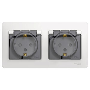 Розетка двухместная Schneider Electric GSL000147 Glossa (16 А, IP44, в сборе) с заземлением и защитными шторками, с крышками, белый