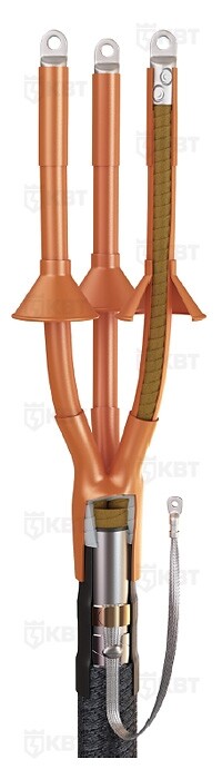 Предназначены для оконцевания 3-х жильных кабелей:;с бумажной маслопропитанной изоляцией;с броней из стальных лент или без брони;с общей алюминиевой или свинцовой оболочкой;на напряжение 6 и 10 кВ;Соответствует требованиям ГОСТ 13781.0-86;Типы монтируемых кабелей: ААБл, (А)СБл, (А)СБГ, ААГ, (А)СГ, ААБв, (А)СБШв, ААШв, (А)СШв, ААБ2лШв, (А)СБ2лШв;Основные термоусаживаемые элементы муфты: перчатка, трубки жильной изоляции, концевые манжеты и жильные изоляторы выполнены из трекингостойкого материала кирпично-красного цвета;Материал трубок устойчив к воздействию ультрафиолетовых лучей, обеспечивает эксплуатационную надежность в любых погодно-климатических условиях;Муфты оснащены системой жильных изоляторов, обеспечивающих наличие гарантированно сухих зон и увеличивающих длину пути токов утечки;Применение маслостойкого герметика со специальными свойствами обеспечивает герметизацию корня разделки кабеля и способствует выравниванию напряженности электрического поля;Термоплавкий клей, нанесенный на внутренние поверхности поясной манжеты, перчатки и концевых манжет, обеспечивает полную герметичность муфты после монтажа;Монтаж узла заземления осуществляется комбинированным способом. Базовая комплектация включает в себя пружину постоянного давления, используемую для крепежа провода заземления к металлической оболочке. Крепеж на бронелентах осуществляется методом пайки;При монтаже узла заземления на кабель с броней из стальных или алюминиевых проволок необходимо дополнительно использовать Комплект заземления КМПБ, соответствующий выбранной муфте;Пружина постоянного давления обеспечивает быстрый и надежный монтаж провода заземления на металлической оболочке. Использование пружины исключает возможный риск термического повреждения бумажной изоляции под алюминиевой оболочкой в случае пайки с применением тугоплавкого припоя А;Комплект муфты универсален и позволяет использовать как кабельные наконечники под опрессовку, так и болтовые наконечники;Инструмент для монтажа: пропановая горелка ПГ (КВТ), набор для срыва головок болтовых наконечников и соединителей НМБ-6 (КВТ);Выпускается по ТУ 3599-006-97284872-2006;