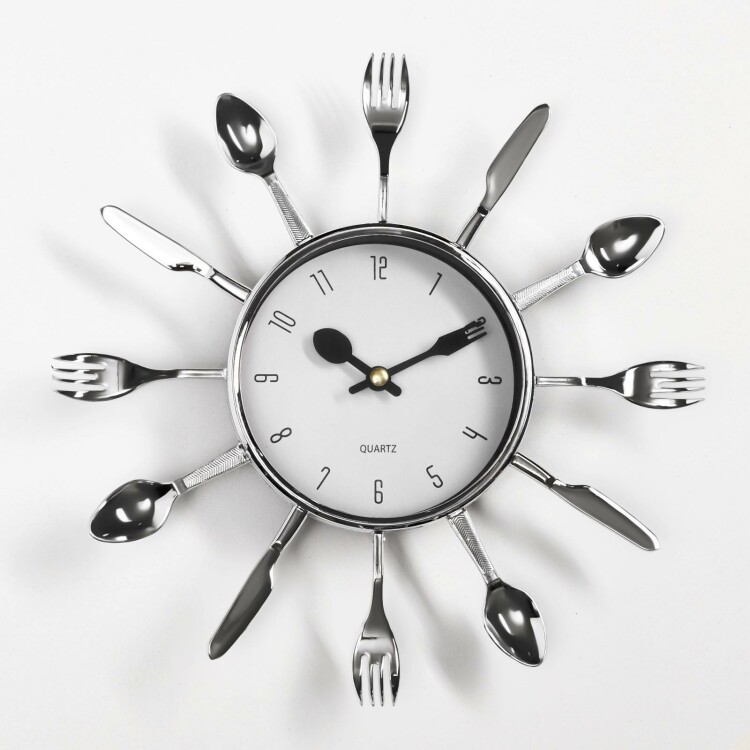 Часы настенные кухня серебро Вилки, ложки, поварешки