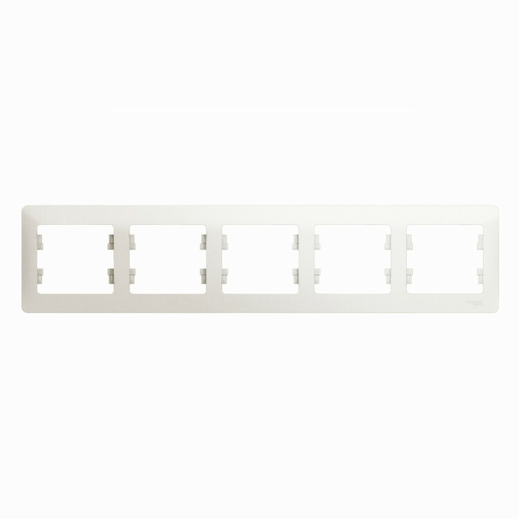 Рамка Systeme Electric (ранее Schneider Electric) серии Glossa (цвет перламутр) пятиместная. Устанавливается в горизонтальном положении. Выполнена из материала PС+ASA, стойкого к УФ-излучению и появлению царапин. Позволяет гармонично вписать электроустановочное изделие в интерьер помещения.