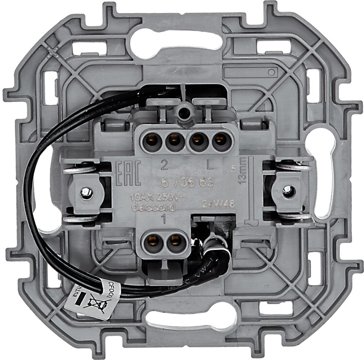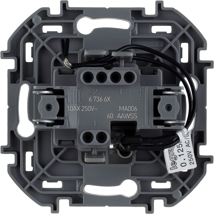 Переключатель одноклавишный Legrand серии Inspiria применяется для управления приборами освещения, вентиляции и т.д. с одного, двух или более мест (совместно с промежуточными выключателями).