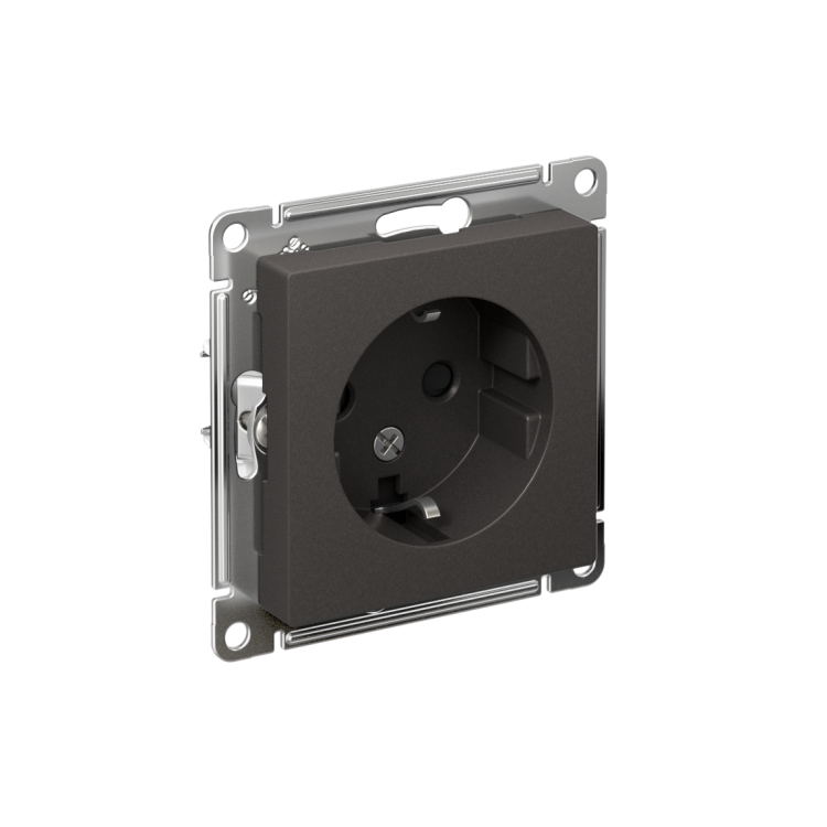 Розетка одноместная Systeme Electric ATN001445 AtlasDesign (16 А) скрытой установки, с заземлением, с защитными шторками, базальт