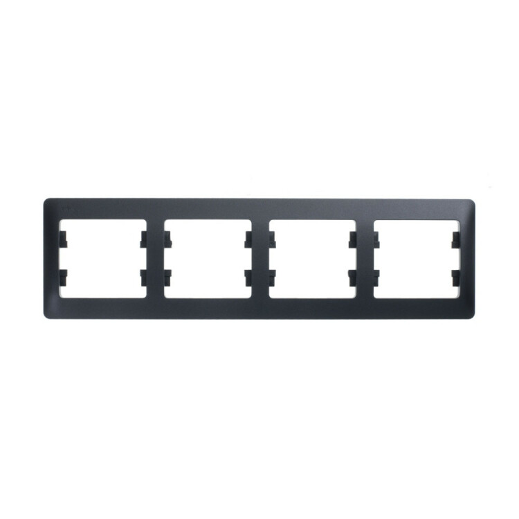 Рамка Systeme Electric (ранее Schneider Electric) серии Glossa (цвет антрацит) четырёхместная. Устанавливается в горизонтальном положении. Выполнена из материала PС+ASA, стойкого к УФ-излучению и появлению царапин. Позволяет гармонично вписать электроустановочное изделие в интерьер помещения. (ранее Schneider Electric ЭУИ UNICA NEW NU200854)