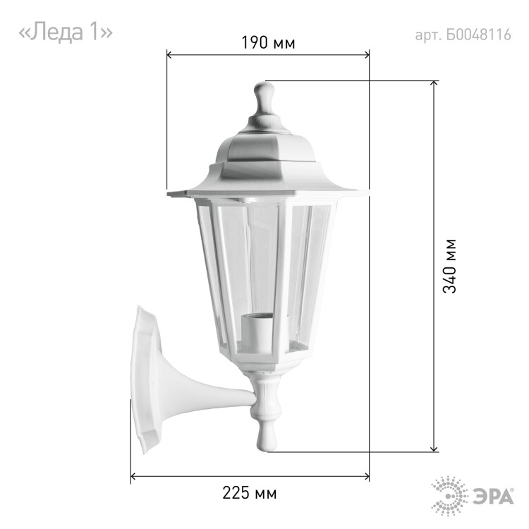 Светильник садово-парковый настенный 60Вт Е27 Пластик белый IP44 6ти гранный