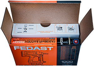 Комплект Fedast fd3025mgbpfc для монтажного пистолета включает гвозди по бетону в количестве 1000 шт. (кассеты по 10 шт.) и газовый баллон длиной 165 мм (объем 80 мл).