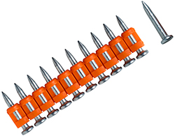 - Гвозди имеют кованый наконечник Bullet Point для лучшего внедрения в особо "сложный" бетон: бетон высокой марки прочности, высотные монолитные строения, панельные строения, колонны, плиты перекрытия.
