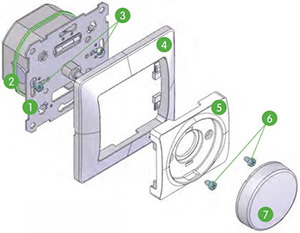 1 - плата управления. 3 - монтажные винты. 5 - накладка. 7 - ручка. |