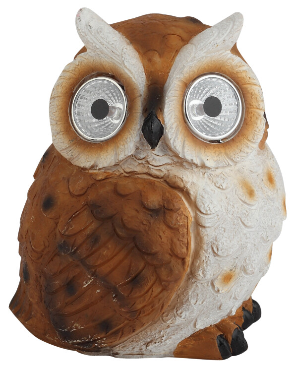 Садовая фигурка ERAFYS01-11 "Рыжий филин" мило украсит Вашу дачную территорию. Небольшие размеры позволят Вам расположить светильник в саду, украсить прудик, альпийскую горку, необычно подсветить цветы, деревья или вход в дом. Фигурка из полистоуна высотой 13 см с легкостью устанавливается в землю. Беспроводной led светильник функционирует на солнечной батарее. Такой вид получения энергии является наиболее экологичным, энергоемким, а также бесшумным. Питание происходит во включенном режиме, в дневное время. С наступлением ночи рыжий филин оживает. Территория вокруг фигурки начинает светиться белым светом, исходящим из больших любопытных глаз. Точечная проработка деталей филина и его забавная поза создают впечатление настоящей птицы. Солнечная батарея рассчитана 8 часов непрерывной работы. Высокая степень пыле и влагозащиты позволяет оставлять садовый светильник на улице даже в непогоду. Обращаем Ваше внимание, что перед использованием фигурки её необходимо включить и зарядить. Светильник заряжается в течение всего светового дня. Декоративный садовый светильник от бренда ЭРА прекрасный вариант для преображения Вашего участка.