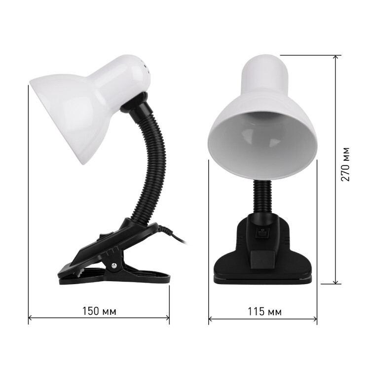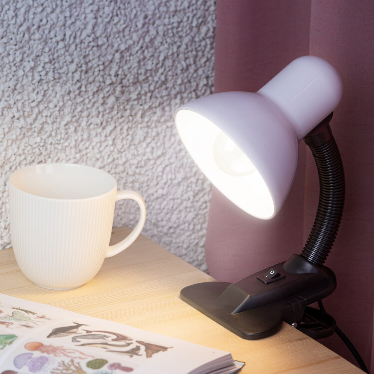 Настольный светильник-прищепка ЭРА N-212-E27-40W-W может использоваться с лампой накаливания, компактной люминесцентной лампой (КЛЛ) или светодиодной (LED) лампой. У светильника прочная удобная прищепка и металлический плафон. Наклон и поворот плафона в любом направлении для удобного направления света. Поставляется в "мягкой упаковке" - индивидуальном ПЭ пакете.