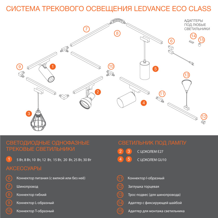 Адаптер встроенный для однофазного трека чёрный Ledvance