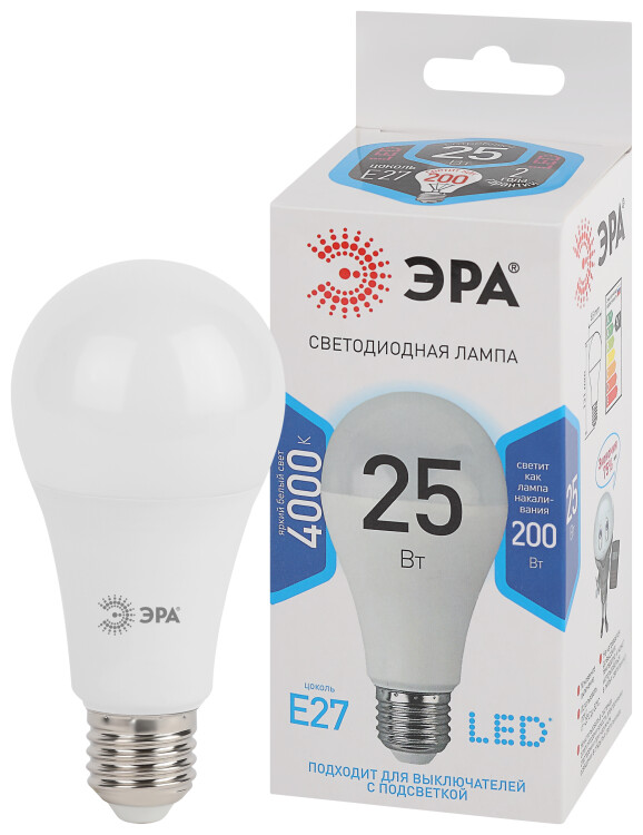 Лампа свд 220В Е27 25Вт 4000К 2000лм стандарт A65 матовая ЭРА
