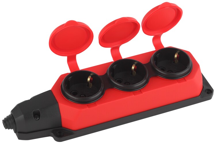 Колодка электрическая каучуковая Эра K-3e-RED-IP44 c заземлением, 3 розетки. Корпус выполнен из пыле- и влага- защищенного материала (каучук). Рассчитана на максимальную мощность 16А / 3500 Вт и для подключения кабеля сечением до 2,5 мм2. Электрическая колодка подойдет для тех, кто хочет сделать удлинитель самостоятельно. Также может использоваться как накладные розеточные блоке в подсобных помещениях.