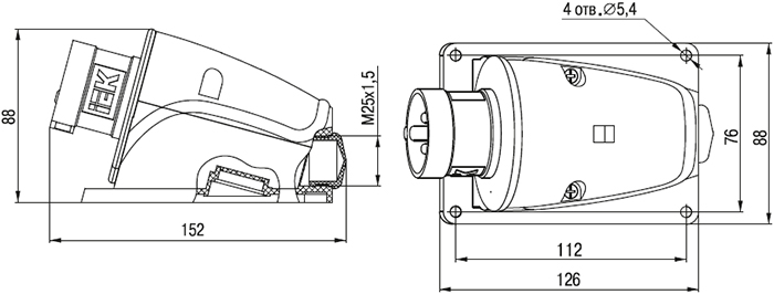 Вилка силовая стационарная ССИ-514 IEK PSN52-016-4 Magnum (16 A, 3P+PE, 380 В, IP44)