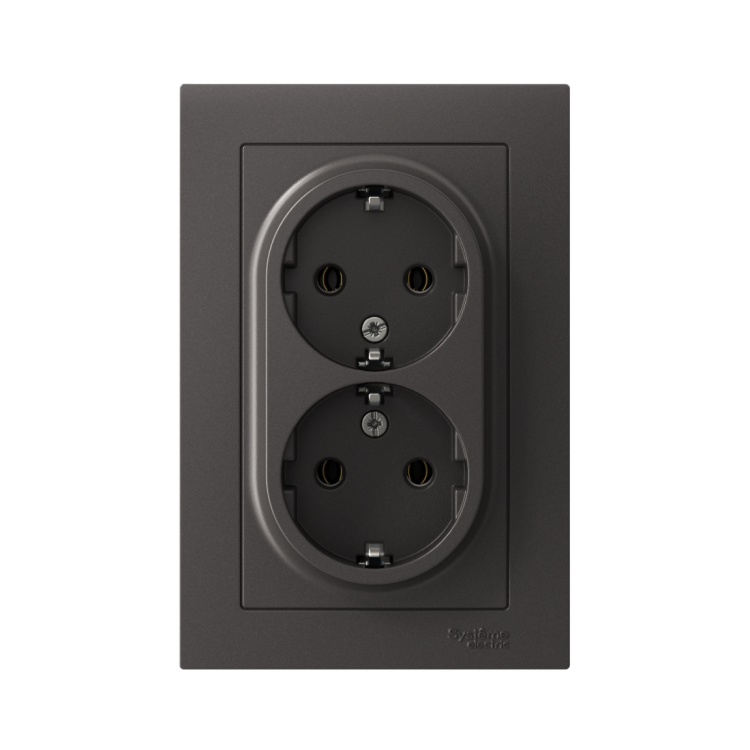 Розетка двойная в сборе Systeme Electric (ранее Schneider Electric) серии AtlasDesign в цвете базальт с заземлением, без шторок подходит для сетей 250 В, на ток 16 А. Заземляющий контакт обеспечивает дополнительную защиту от удара электрическим током. Лицевые детали из качественного ABS-пластика, устойчивого к царапинам и УФ-излучению. Двойная розетка позволяет подключить два устройства в одном месте. Изделие поставляется в комплекте с рамкой того же цвета.