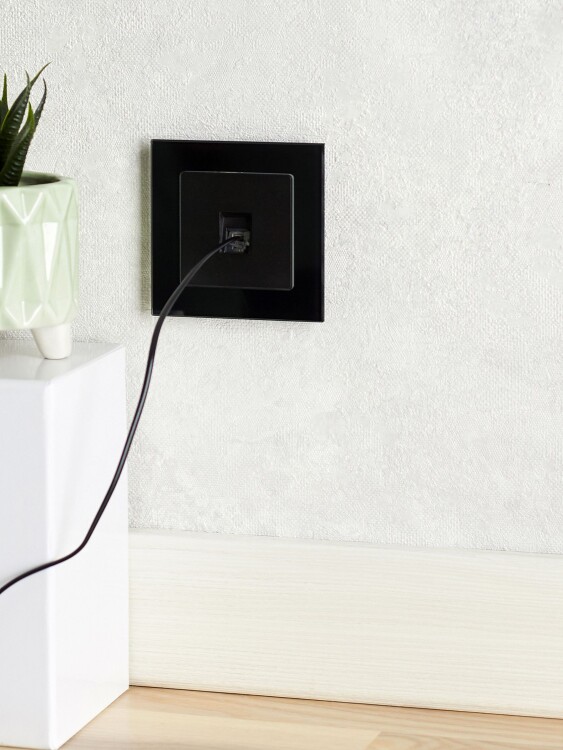Розетка предназначена для подключения сетевого кабеля компьютерной техники.