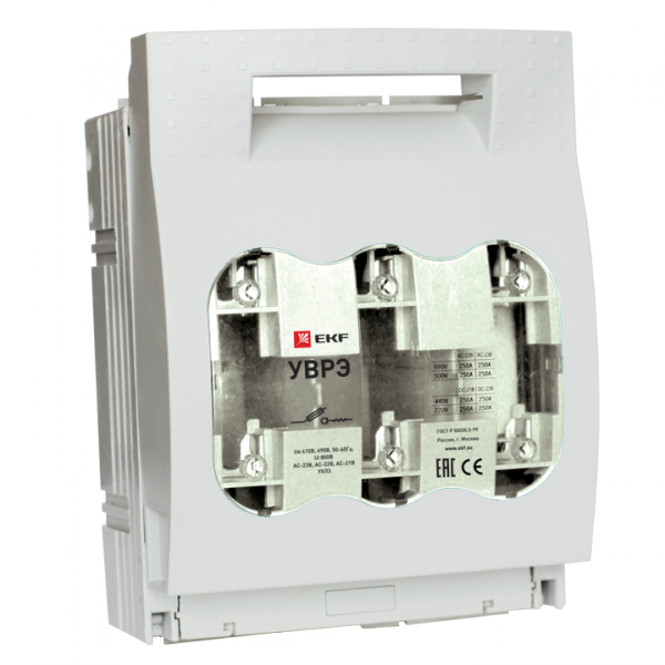 Выключатели-разъединители УВРЭ откидного типа с плавкими предохранителями предназначены для ручного включения-отключения и для защиты от коротких замыканий и перегрузки цепей переменного тока номинальным напряжением до 690В частотой 50Гц (предохранители в комплект поставки не включены). Применяются в вводно-распределительных устройствах, распределительных и шкафах управления. Видимый разрыв обеспечивается благодаря откидной крышке, оснащенной держателями предохранителей. При открывании крышки происходит разрыв цепи (первый разрыв происходит в верхней части). Она также выполняет функцию фронтальной защиты от прикосновений. В крышке предусмотрены контрольные отверстия для измерения напряжения и других параметров специальным щупом. Выключатели устанавливаются на монтажную панель. Выключатели могут дополнительно оснащаться электромеханическим дополнительным контактом состояния NO+NC. Выключатели поставляются в двух вариантах исполнения корпуса (см. фото).
