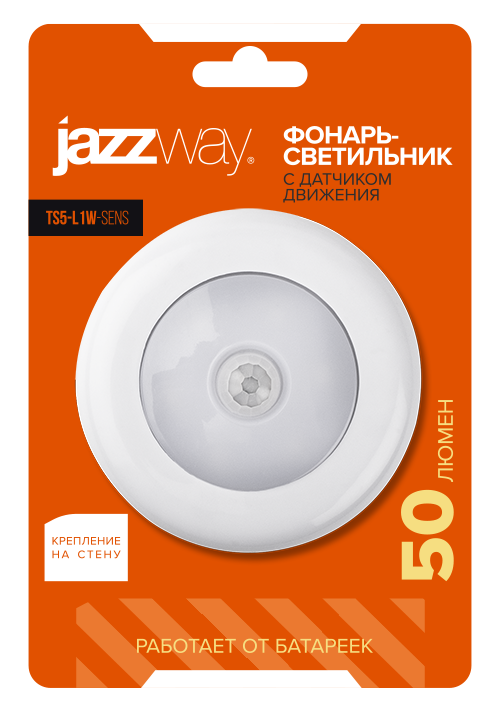 Фонарь с датчиком 1СВД 1Вт 50лм 3*ААА Jazzway света и движения