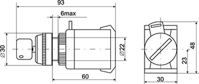 Переключатель АKS-22 на два фиксированных положения, с ключом, предназначен для переключения отдельных электрических цепей переменного тока напряжением до 660 В и постоянного тока напряжением до 440 В, с защитой от несанкционированного включения.