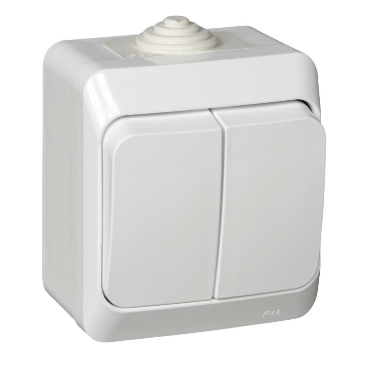 Выключатель Systeme Electric (ранее Schneider Electric) ЭТЮД (белый, открытой установки) двухклавишный предназначен для применения в сетях до 250В, на ток до 10А. Выключатель подходит для большинства типов ламп, включая люминесцентные. Две клавиши позволяют управлять двумя источниками света с одной точки. Он удобен в применении и отлично подходит для ванной комнаты (IP44). Сделано в России. (ранее Schneider Electric ЭУИ RONDO44 VA510-228B-BI)