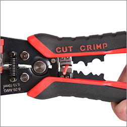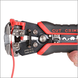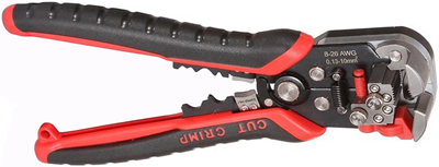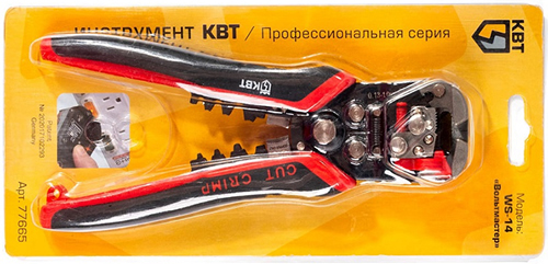 Автоматический многофункциональный стриппер WS-14 КВТ серии "Вольтмастер" предназначен для снятия оболочки и жильной изоляции провода, резки проводов, опрессовки неизолированных медных гильз и наконечников, а также для тестирования электросети переменного напряжения.