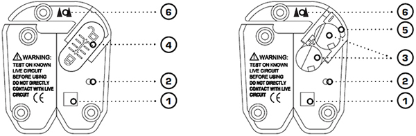 - Встроенный бесконтактный детектор для определения наличия напряжения в сети расположен под задней крышкой механизма, работает от двух батареек LR44, включается / выключается кнопкой активации.