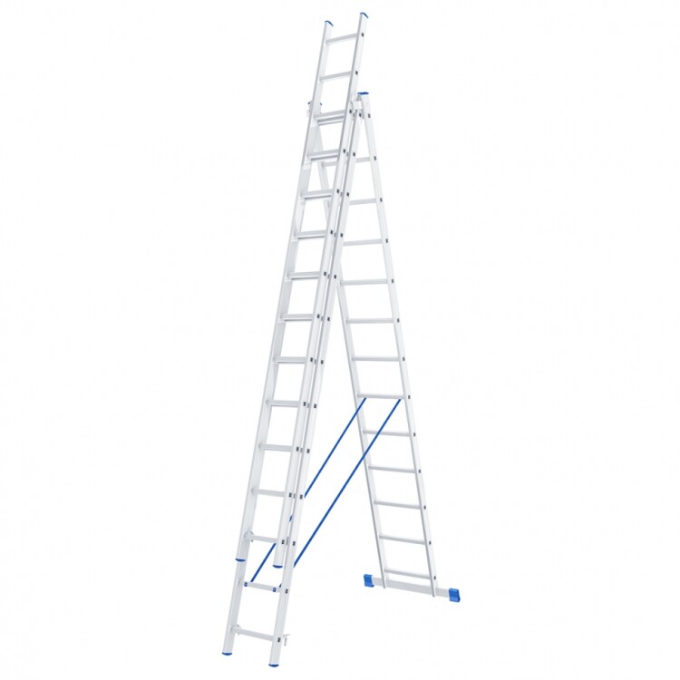 Трёхсекционная лестница "Сибртех" предназначена как для бытового, так и для профессионального использования. Надёжная конструкция и высокое качество сборки изделия обеспечивает безопасность и удобство при работе. Конструкция лестницы, состоящая из трёх секций, при монтаже может принимать одну из пяти форм: приставной лестницы из одного, двух или трёх сегментов, двухсторонней стремянки или стремянки-гибрида с одной выдвигающейся секцией. В сложенном виде удобна для хранения и транспортировки.