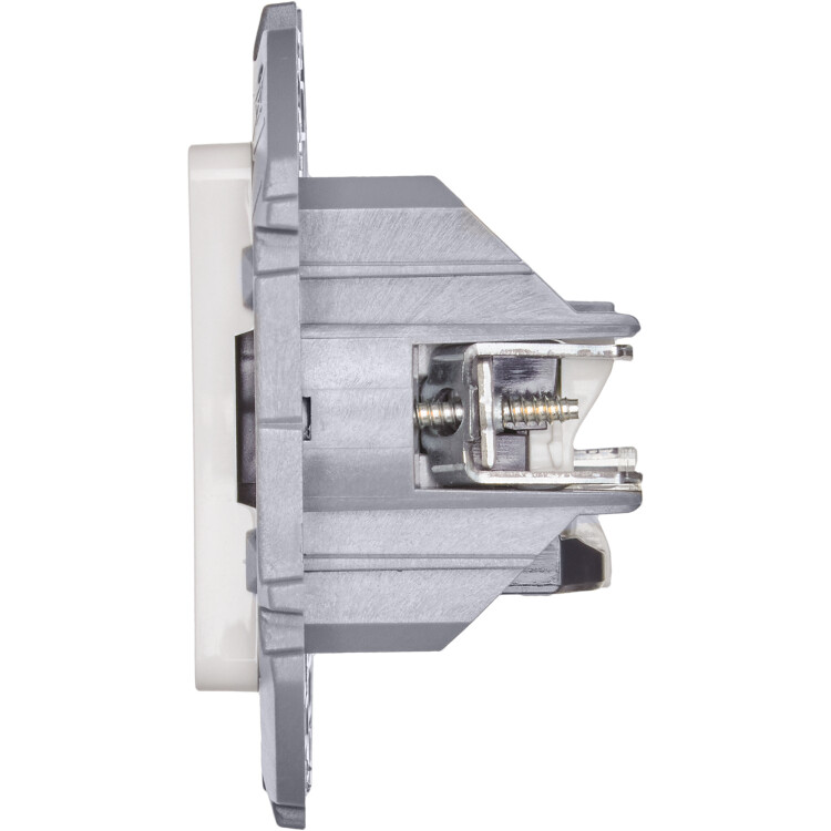 - Присоединение информационного кабеля к розетке не требует специального инструмента, что значительно ускоряет процесс подключения и монтажа