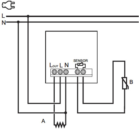 А - светодиод состояния (зеленый): загорается, если термостат включен.
