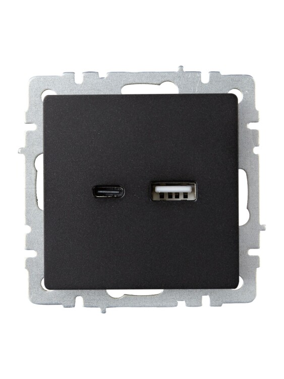 Розетка двойная USB A+C IEK РЮ11-1-БрЧ Brite (12 В, 3,1 А, IP20) скрытой установки, черный