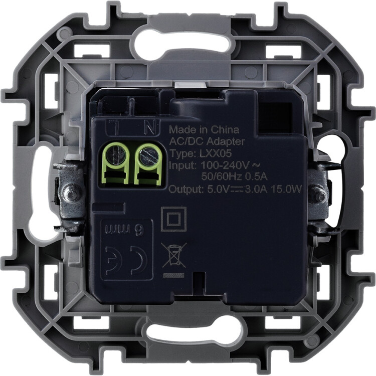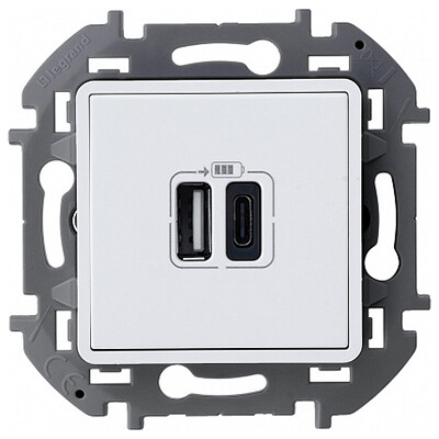 Розетка двухместная USB тип А / USB тип С Legrand 673760 Inspiria (240 В / 5 В, 3000 мА, IP20) скрытой установки, белый