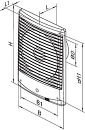 - Благодаря увеличенным размерам лицевой решетки возможно использование вентилятора для монтажа в прямоугольный проем вентиляционной шахты.