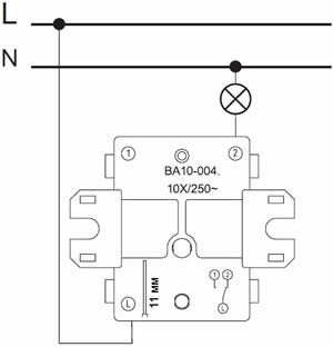 - Выключатели на ток 10 AX подходят для большинства типов ламп, включая люминесцентные.