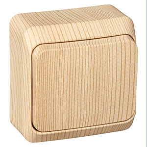 Переключатель одноклавишный Schneider Electric BA10-004D "Этюд" (10 А, IP20) открытой установки, сосна