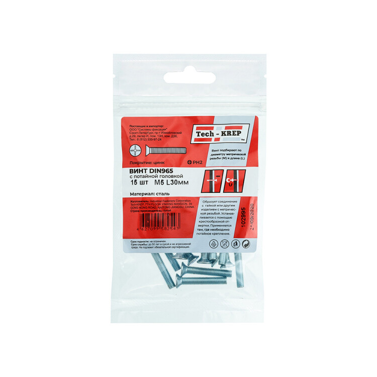 Область применения: монтаж мебельной фурнитуры, легких конструкций из металла, деревянных и пластиковых деталей, установки оконечных электротехнических устройств. Материал: углеродистая сталь с антикоррозионным цинковым покрытием. Особенности: имеет потайную головку с крестообразным шлицем PH и полную метрическую резьбу. Может использоваться самостоятельно и совместно с гайками, шайбами. Устанавливается в зенкованное отверстие с метрической резьбой. Требуется предварительное сверление и нарезание резьбы соответствующего размера.