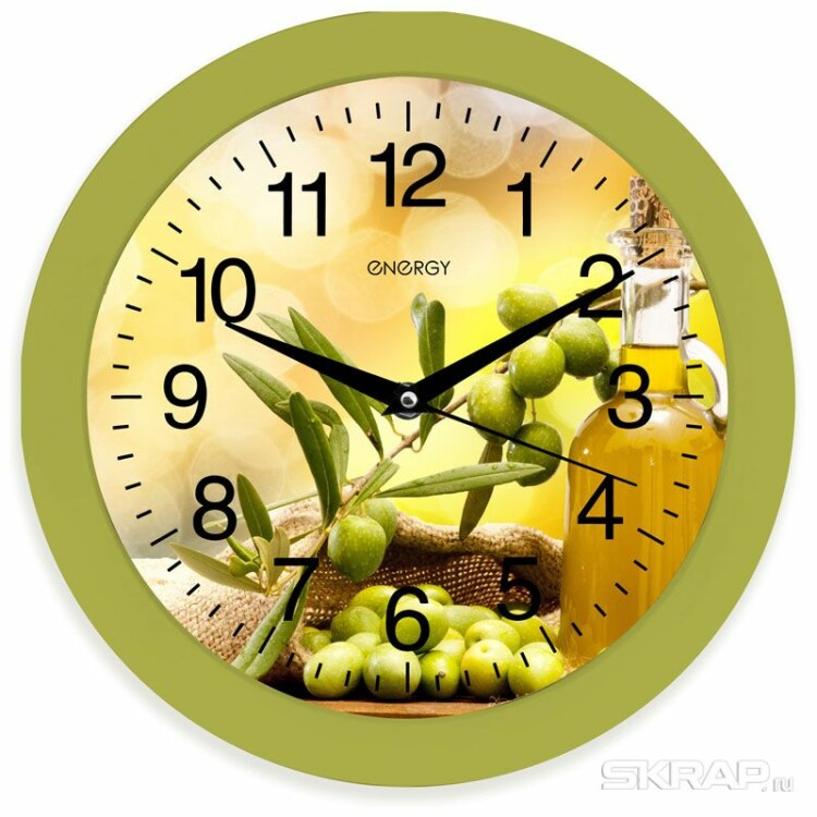 Часы настенные круг зеленый Оливки ЕС-100