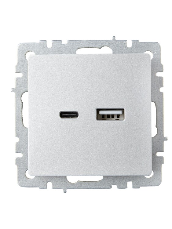 Розетка двойная USB A+C IEK РЮ11-1-БрА Brite (12 В, 3,1 А, IP20) скрытой установки, алюминий