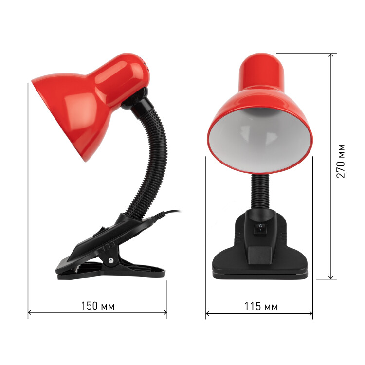 Металлический плафон. Направление света рег улируется гибкой стойкой, которая обеспечивает наклон и поворот плафона в любом направлении. Выключатель на прищепке. Классический дизайн.