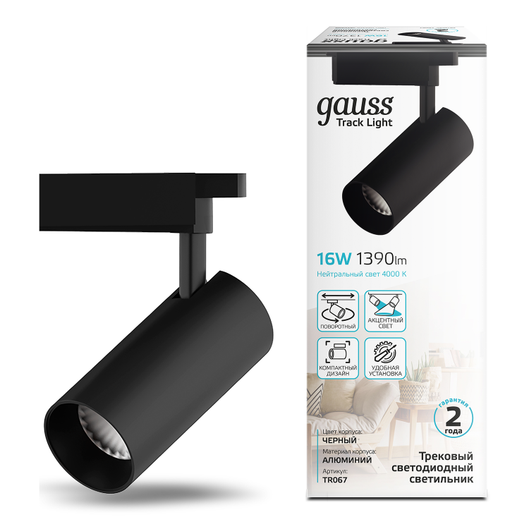 Светильник трековый Gauss цилиндр 16W TR067 имеет компактный дизайн, угол поворота 360° и оптимальный наклон в вертикальной плоскости. Это очень пластичный светильник для акцентного освещения отдельных зон жилых и нежилых помещений и для точного функционального освещения: журнальный и рабочий стол, гардероб, зеркала, интерьерные цветы и другие предметы интерьера, требующие дополнительного направленного света. Световой пучок 24°, яркость 1390лм, цветовая температура 4000К. Цвет корпуса черный, материал алюминий. Встраивается в трековые системы Gauss.